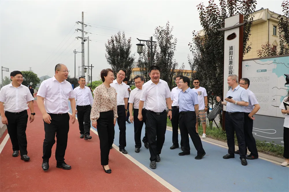 佟桂莉一行先后來到時代大道改建、浦陽江治理三期工程現場,仔細查看項目建設進度,認真聽取情況匯報,并充分肯定了前階段工作成效。