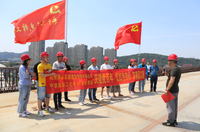 2021年6月23日下午,交通建管公司黨支部聯合03高架項目臨時黨支部開展了“砥礪前行踏征途重溫入黨申請書”主題黨日活動。全體黨員一同前往03高架彩虹互通現場,黨員代表誦讀入黨申請書,分享重溫入黨申請書感悟,之后全體黨員集體重溫入黨誓詞,向100周年華誕的共產黨獻上自己的祝福。在活動中,黨員們再次回憶起自己當初入黨時的初心和向往,能成為一名共產黨員時的激動心情,希望能更好地在未來的路上不忘初心,牢記使命,爭做優秀的共產黨員。