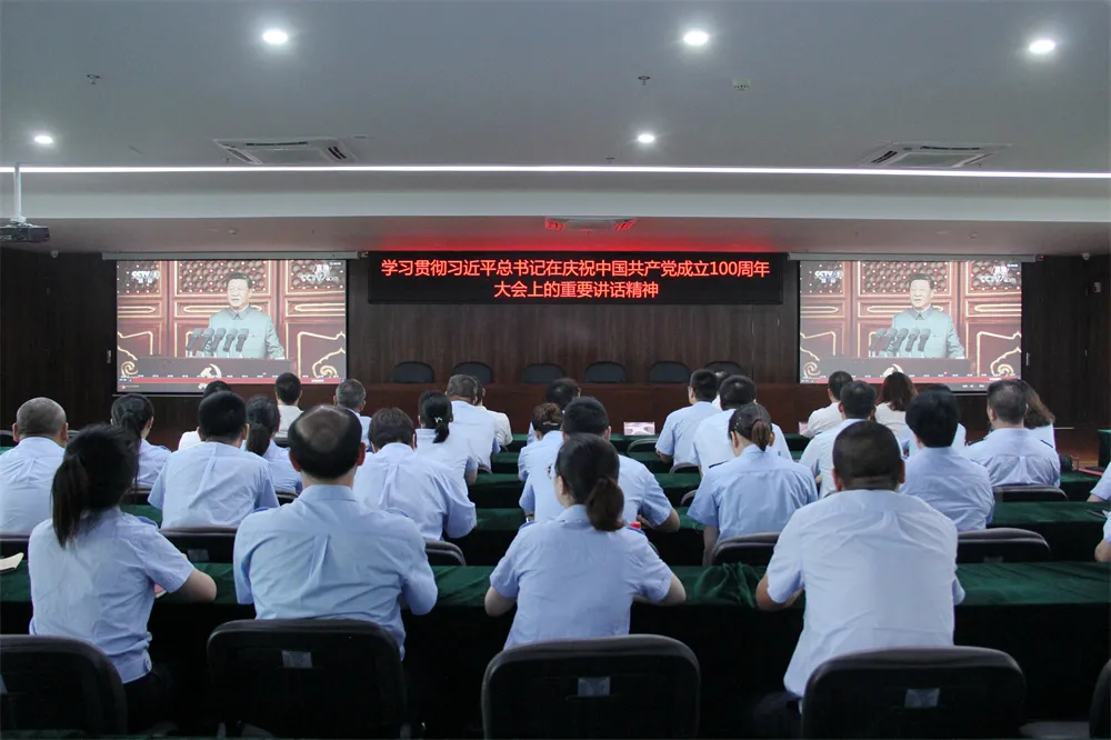 7月1日上午8時,慶祝中國共產黨成立100周年大會隆重舉行,中共中央總書記、國家主席、中央軍委主席習近平發表重要講話。集團本部與下屬單位組織除在崗人員以外的全部干部職工收聽收看實況直播。在集中收看過程中,廣大干部職工認真聆聽、凝神觀看、不時記錄,深切體悟中國共產黨為民族復興、國家富強、人民進步做出的偉大貢獻。