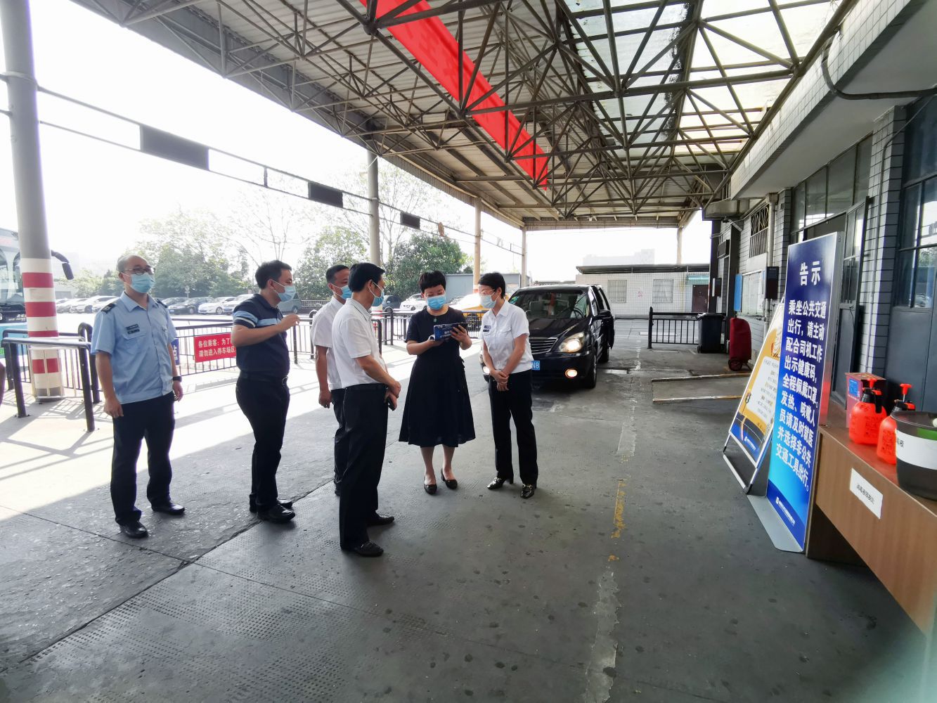 李樹春局長一行深入通惠路公交站實地查看了當前客流狀況,重點對候車大廳、乘車站臺、站房等關鍵部位和人員密集場所的消防、安檢、防疫等配套設施設備安全運行狀況、操作使用情況進行了重點檢查和調研;隨后翻閱了各項安全生產臺賬、車輛消毒記錄臺賬,并詳細詢問了公司安全管理制度建設、日常監管、值班值守等方面工作以及國慶節前運營保障、人員保障、安全隱患排查整治情況。