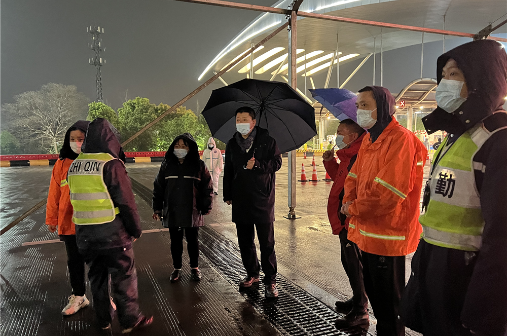 副區長方軍20日下午及晚上,前往機場公路主線收費站檢查疫情防控工作。
