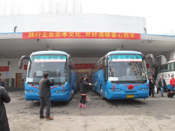 今年已是“愛心班車”第11次啟程。由蕭山長運公司提供的這兩列“愛心班車”全程免費,服務對象主要是農民工、環衛工等外來在蕭務工人員。這既是蕭山長運回饋社會、致力公益的一項老傳統,也是蕭山長運在交投集團領導下踐行忠孝文化、實現文化強企的一項新舉措。由于旅途漫長,公司還貼心地為乘客們準備了早餐和飲用水,為他們送上濃濃的關切與祝福。