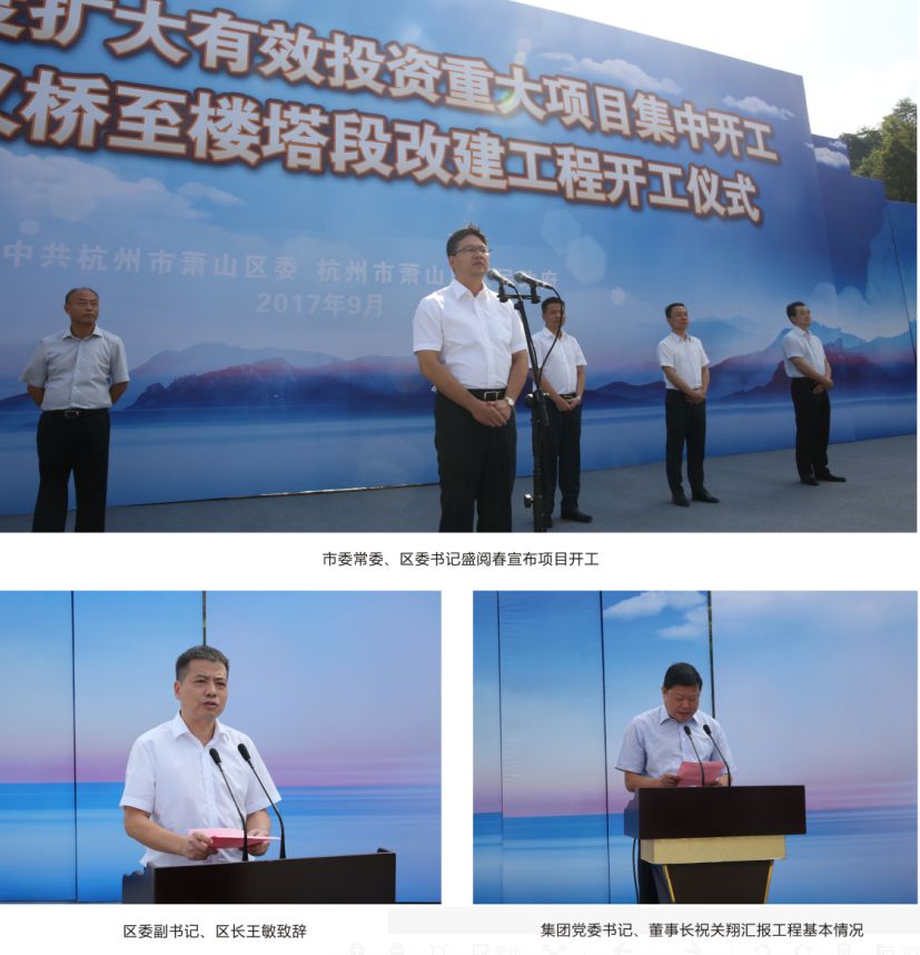 區(qū)委副書記、區(qū)長王敏致辭,對03省道義橋至樓塔段改建工程開工表示祝賀。他指出,該工程是列入2017年區(qū)政府十件實(shí)事的重點(diǎn)民生工程,是杭州市快速路網(wǎng)重要組成部分,對于加快蕭山南部融入大杭州、改善區(qū)域交通、帶動(dòng)產(chǎn)業(yè)發(fā)展具有十分重要的意義。