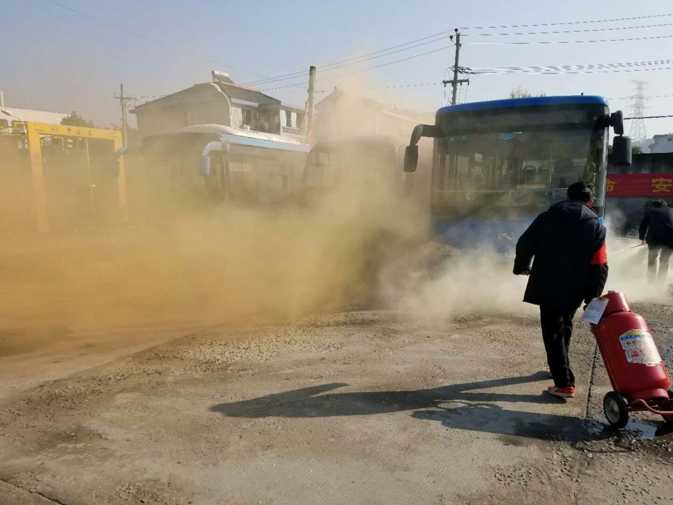 9時58分,場區(qū)啟動停車場消防應(yīng)急預(yù)案。9時59分,場站負(fù)責(zé)人員發(fā)現(xiàn)義橋公交站東南區(qū)塊濃煙滾滾,迅速通知在場人員火警情況;9時59分,四車隊(duì)人員、六車隊(duì)人員、司機(jī)、站員、物業(yè)人員迅速趕至起火點(diǎn)開展滅火自救,并由付隊(duì)進(jìn)行現(xiàn)場指揮,10時01分,在場司機(jī)對起火點(diǎn)周邊車輛迅速進(jìn)行疏散,10時02分,消防水帶出水,10時03分“火勢”撲滅,警報解除。安保部相關(guān)負(fù)責(zé)人對本次演練進(jìn)行點(diǎn)評,并傳達(dá)了集團(tuán)安全工作精神,同時要求各兼職消防隊(duì)員多總結(jié)多反思,鞏固演練成效,持續(xù)加強(qiáng)訓(xùn)練,確保各停車場安全穩(wěn)定。