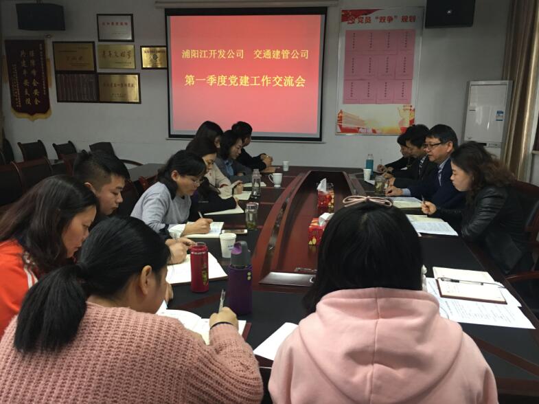 根據集團黨委安排,2018年,浦陽江開發公司與交通建管公司黨支部結對開展黨建引領“陽光工程”品牌建設。為確保結對共建實效,3月14日下午,浦陽江開發公司與交通建管公司黨支部開展了第一季度黨建聯席會議和工作交流會議。兩家公司黨員、入黨積極分子參加會議,會議在浦陽江開發公司會議室召開。